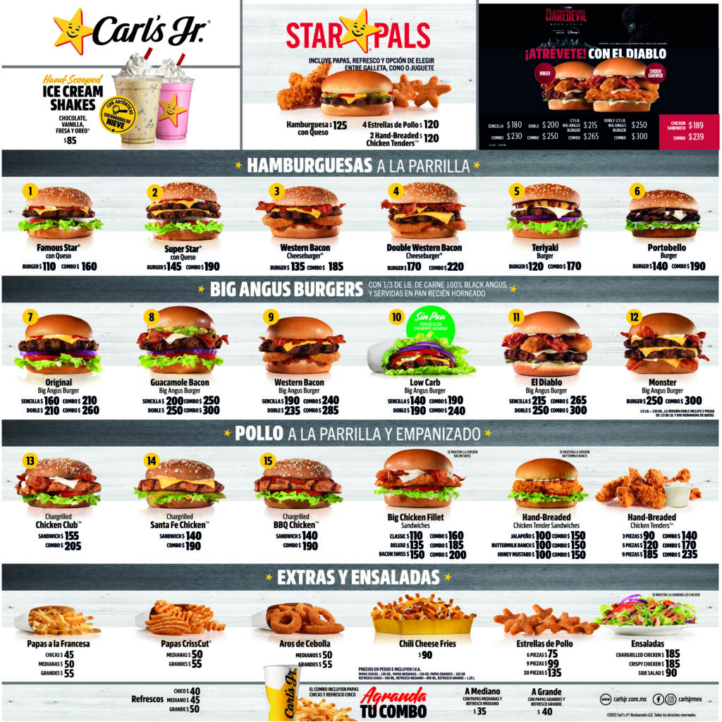 Menú Carl´s Jr.